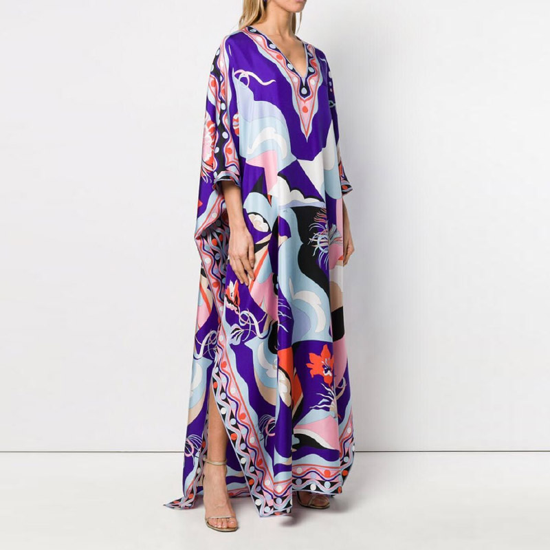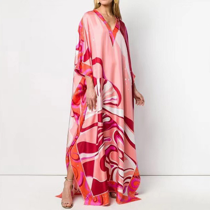 2021 Floral Print Elegant Maxi Dress Summer Women V-Neck Oversized Loose Long Boho Dresses Casual Female Split Dress Vestidos