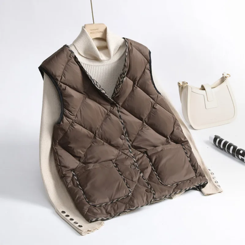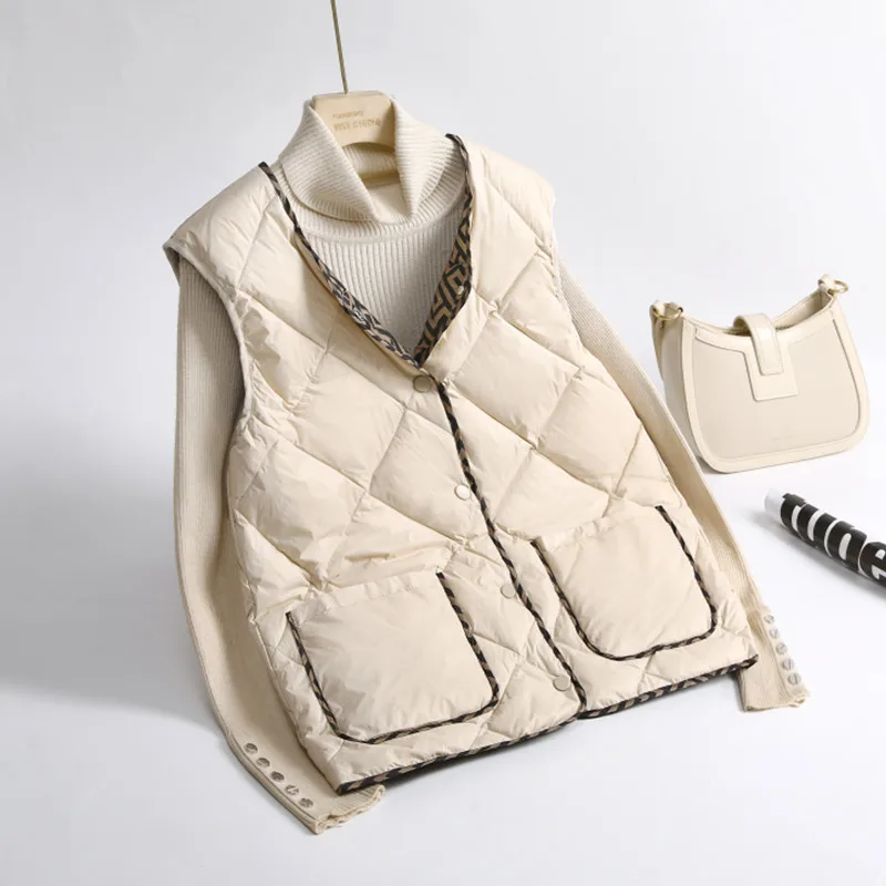 2022 New Fashion Autumn and Winter Women Sleeveless Waistcoat Jacket Light Down Vest White Duck Down Vest Female Short Outwear