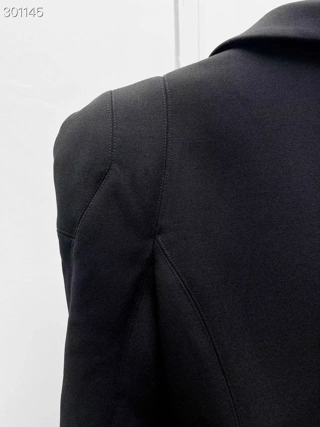 High Quality Women's Blazer Jacket Solid Long Coat Single Breasted Fashion Runway 2022 Ladies Vintage Black Coat