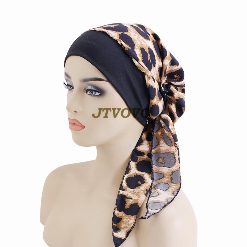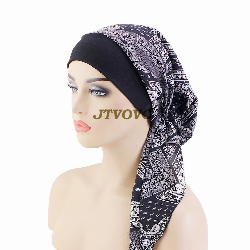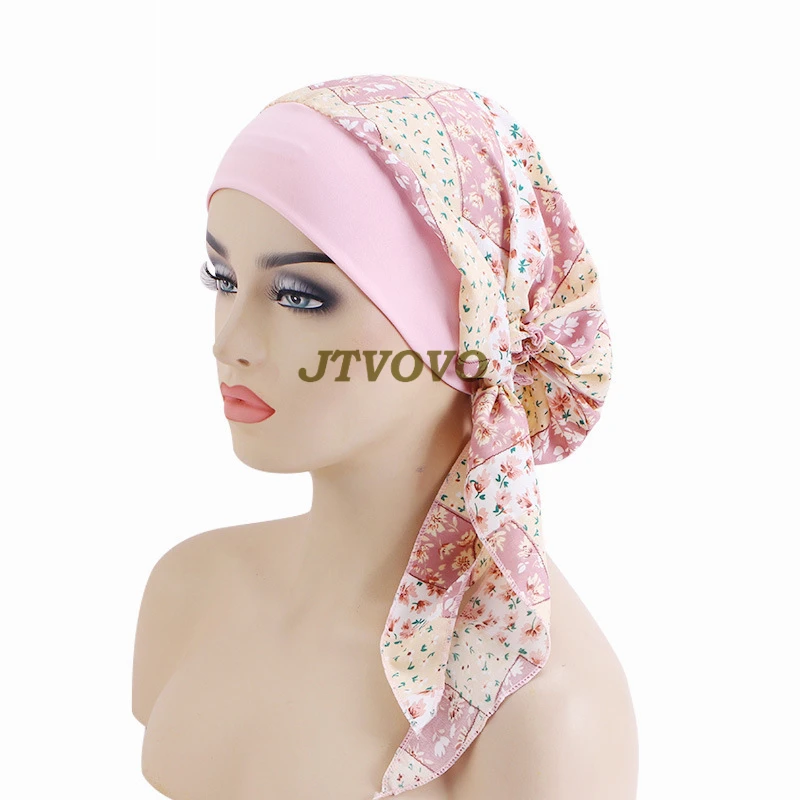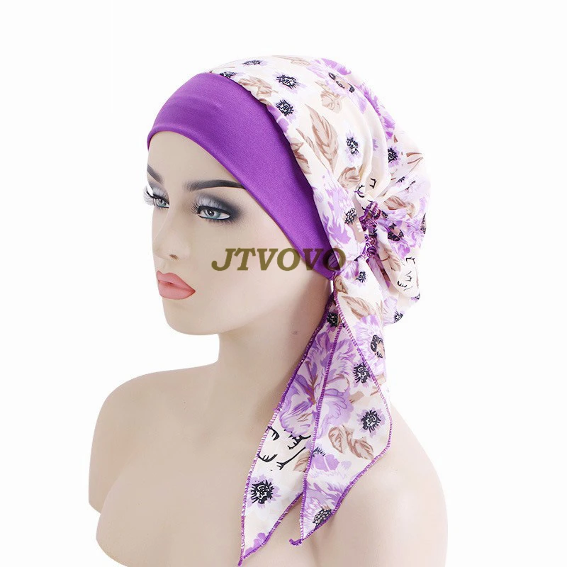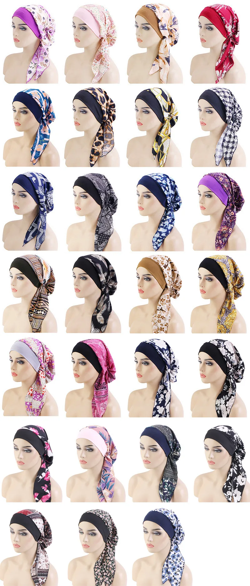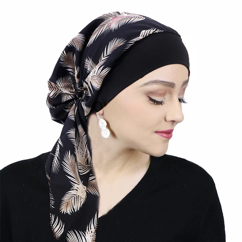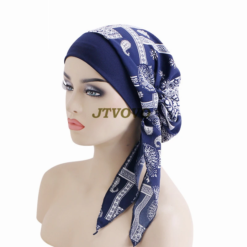 Women Plume Printed vintage Headscarf Elastic Muslim Female Hijab Hat Hair Loss Cover Head Wrap hair scarf Stretch Bandana