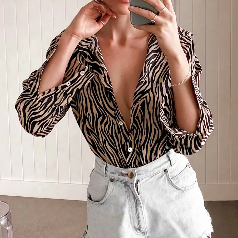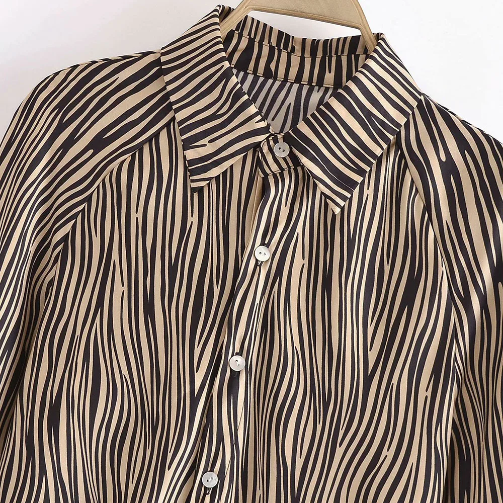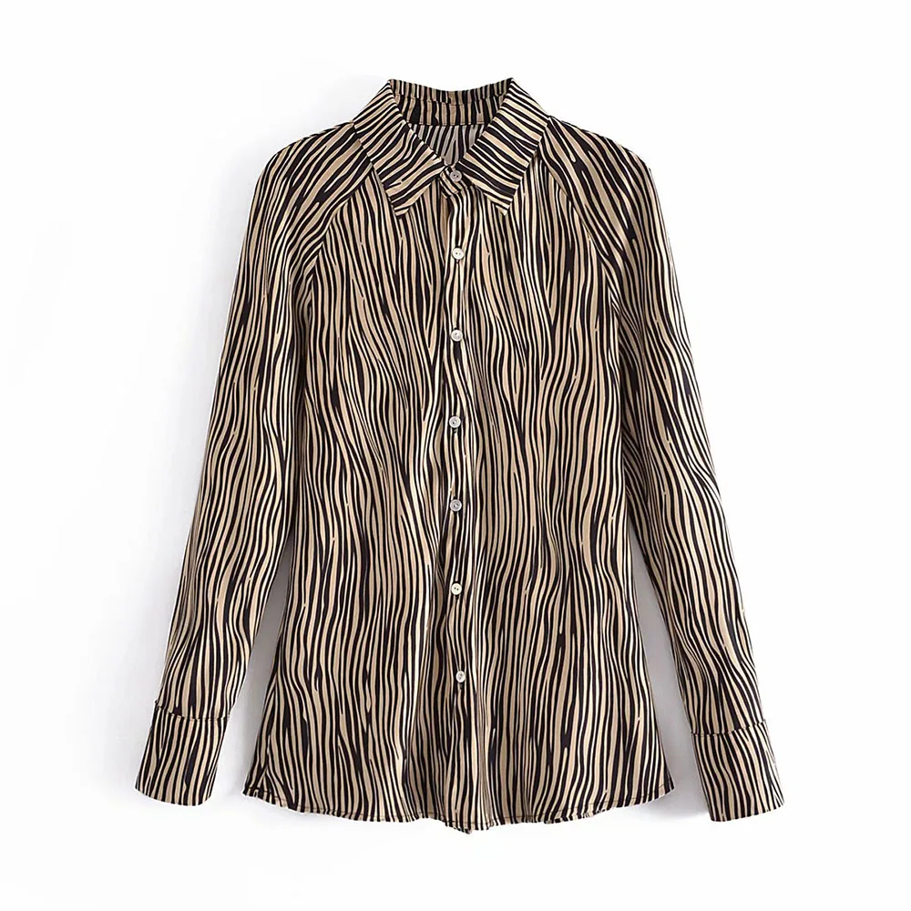 XEASY 2021 Women Fashion Zebra Print Blouses Vintage Long Sleeve Button-Up Female High Street Shirts Chic Tops